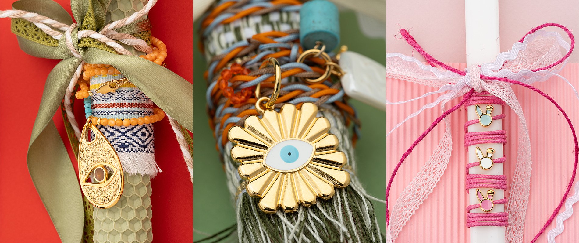 Η δημιουργία λαμπάδων που συνοδεύονται από ολοκληρωμένα κοσμήματα προσφέρει διπλή αξία στους πελάτες σας. Φτιάξτε βραχιόλια, κολιέ ή μπρελόκ με τα components της επιλογής σας και τοποθετήστε τα πάνω σε λαμπάδες. Μετά το Πάσχα, το κόσμημα μπορεί να αφαιρεθεί και να φορεθεί, μετατρέποντας την παραδοσιακή λαμπάδα σε ένα δώρο που μένει. Μια έξυπνη προσθήκη στις συλλογές σας που συνδυάζει τη γιορτινή παράδοση της λαμπάδας με πρακτική αξία.